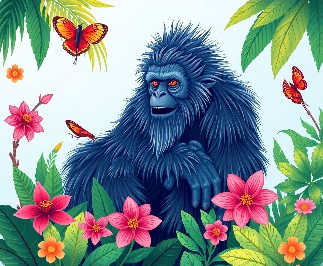 Ultimately, step back and admire your completed tropical botanical scene. Furthermore, the mystical yeti emerges among vibrant foliage. Your finished artwork captures both botanical accuracy and mythical charm perfectly.