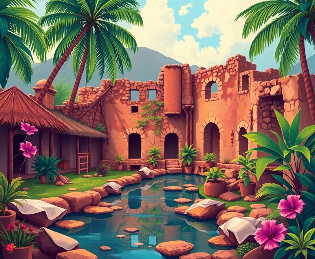 Ultimately, add finishing touches to smaller details and shadows. Your completed vintage tropical ruins scene will showcase mysterious beauty. Display your finished artwork proudly in any room.