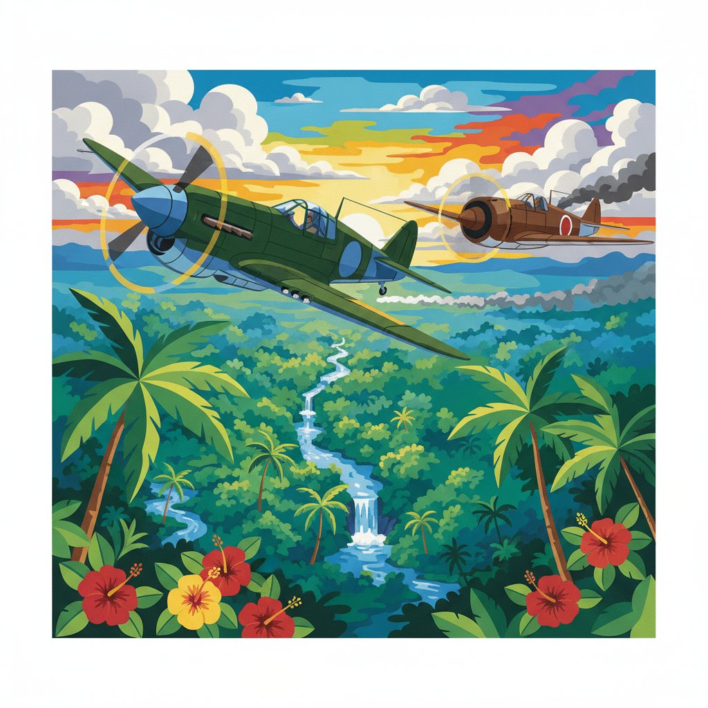 What’s Included in Your Dogfight Over Lush Tropics Paint By Numbers Kit