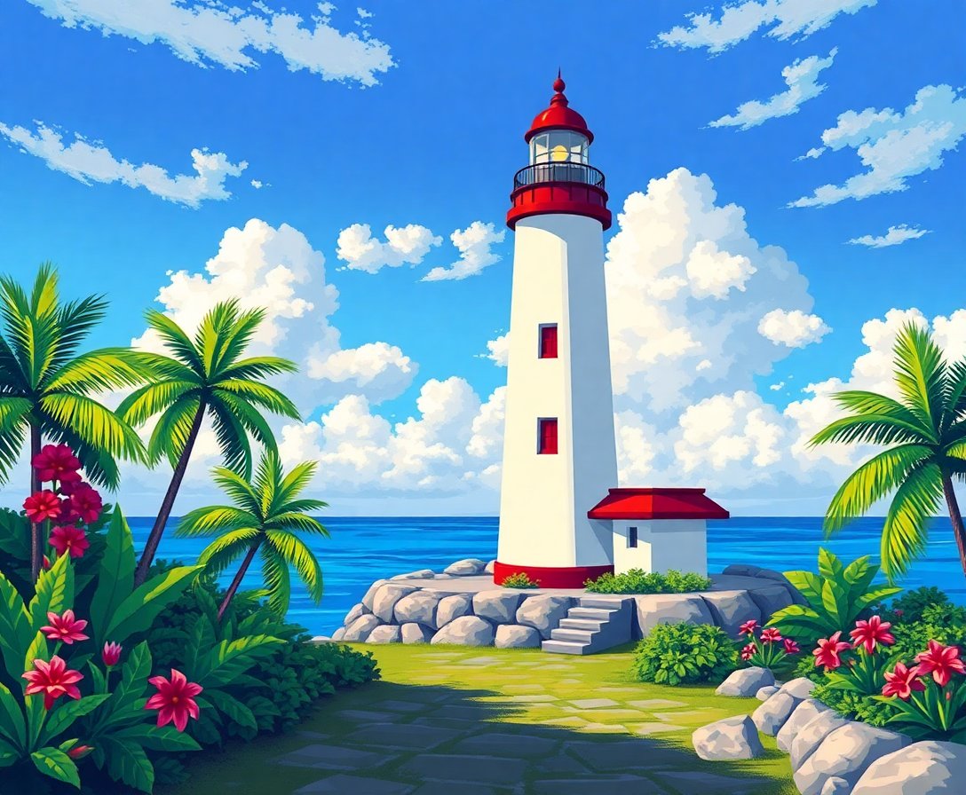 Experience the joy of creating your own tropical beacon entrance today. This sunbaked coastal scene awaits your artistic touch, promising hours of relaxing creativity and a stunning finished masterpiece to treasure.