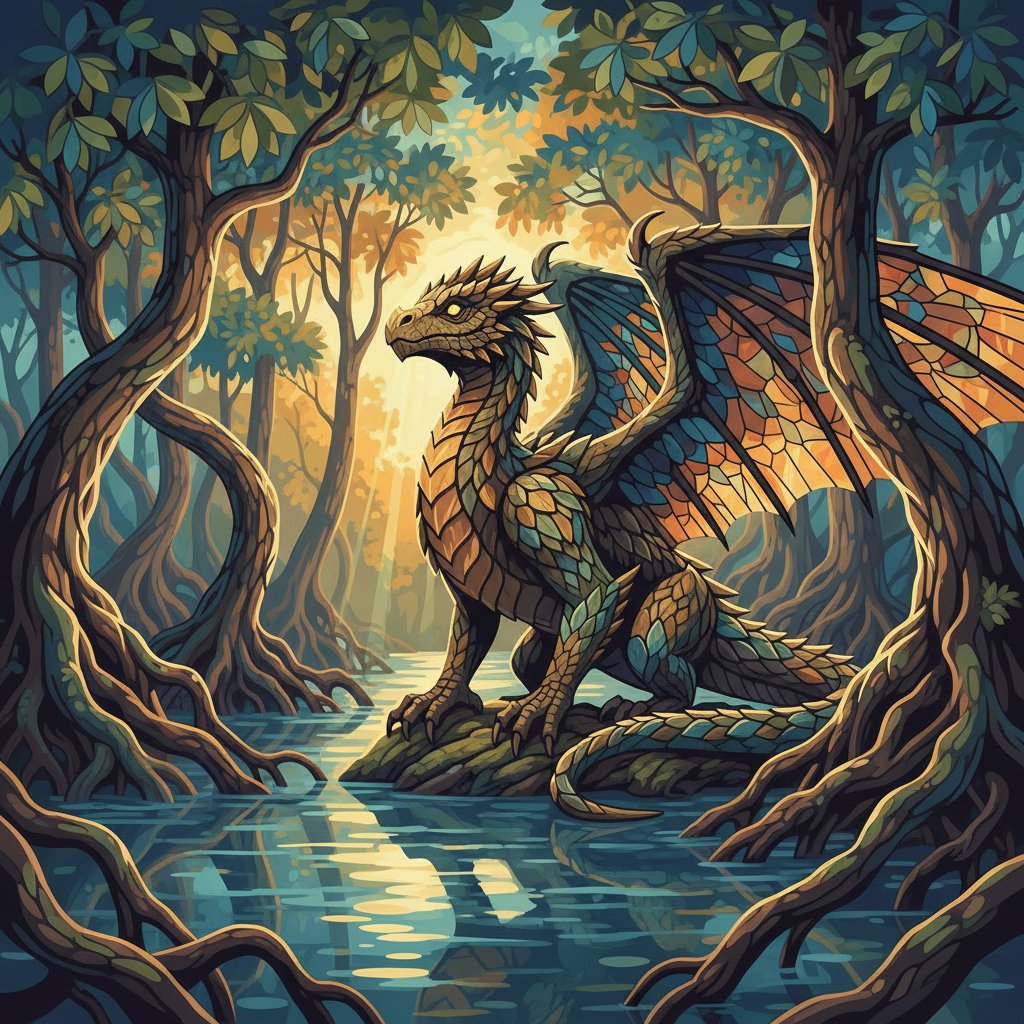 Step into an enchanted realm where ancient drakes soar through misty mangrove forests. The Drake Of Vintage Mangroves Paint By Numbers offers artists a captivating journey into mythical landscapes painted in warm sepia tones.