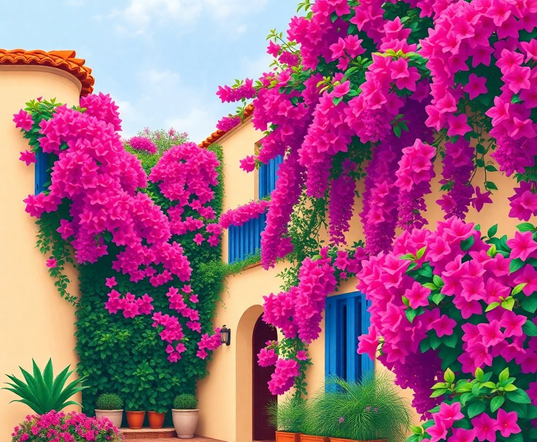 Therapeutic Benefits of Draping Bougainvillea Architecture Paint By Numbers