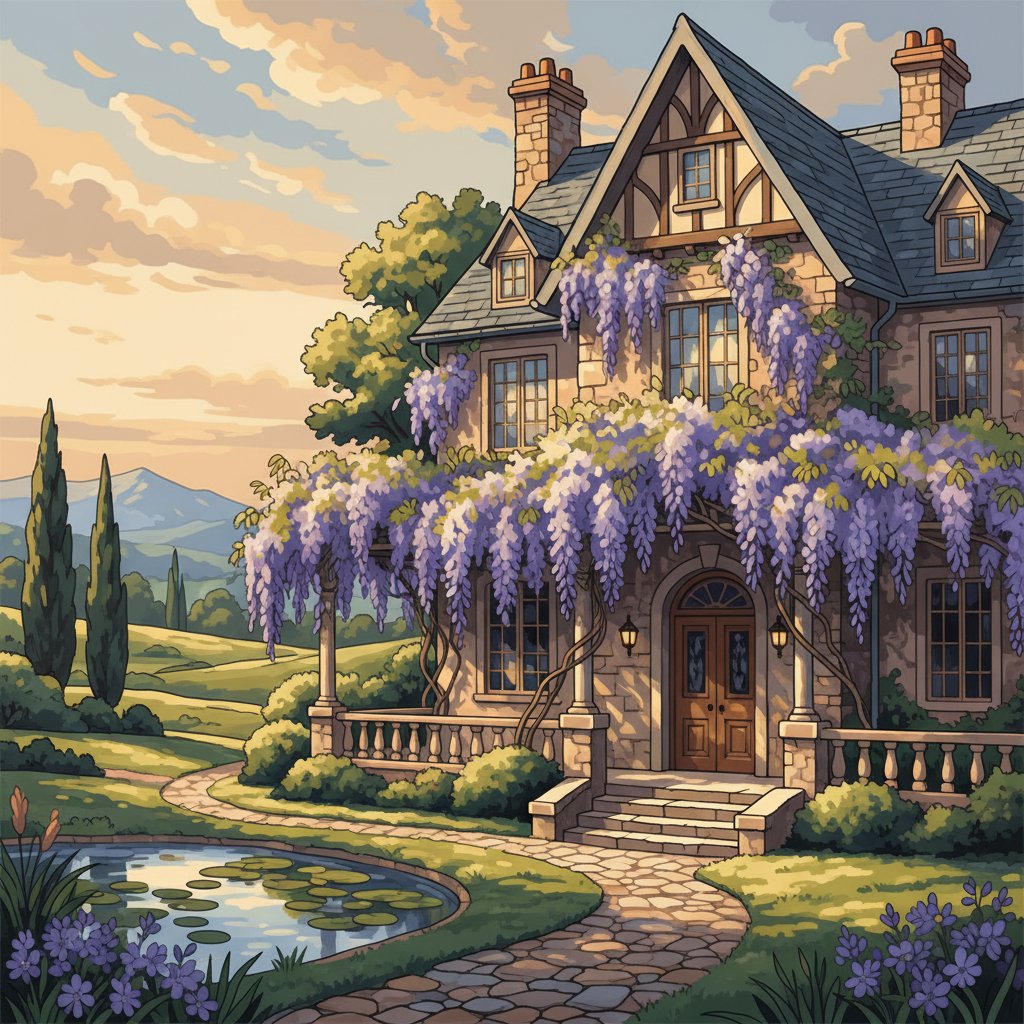 Transform your space with this stunning Draping Wisteria Vintage Estate Paint By Numbers masterpiece. This enchanting design captures the romantic essence of cascading violet blooms adorning a timeless estate setting. Experience the therapeutic joy of creating botanical art while bringing vintage elegance to life.