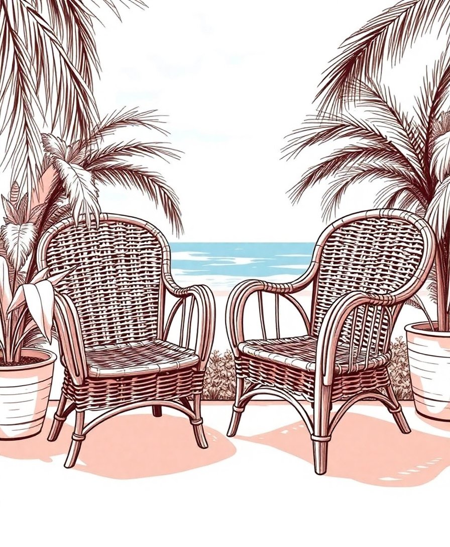 Yes! The carefully selected sepia palette creates authentic sketching effects that capture the tropical wicker furniture beautifully. The realistic style makes it perfect for sophisticated home decor.