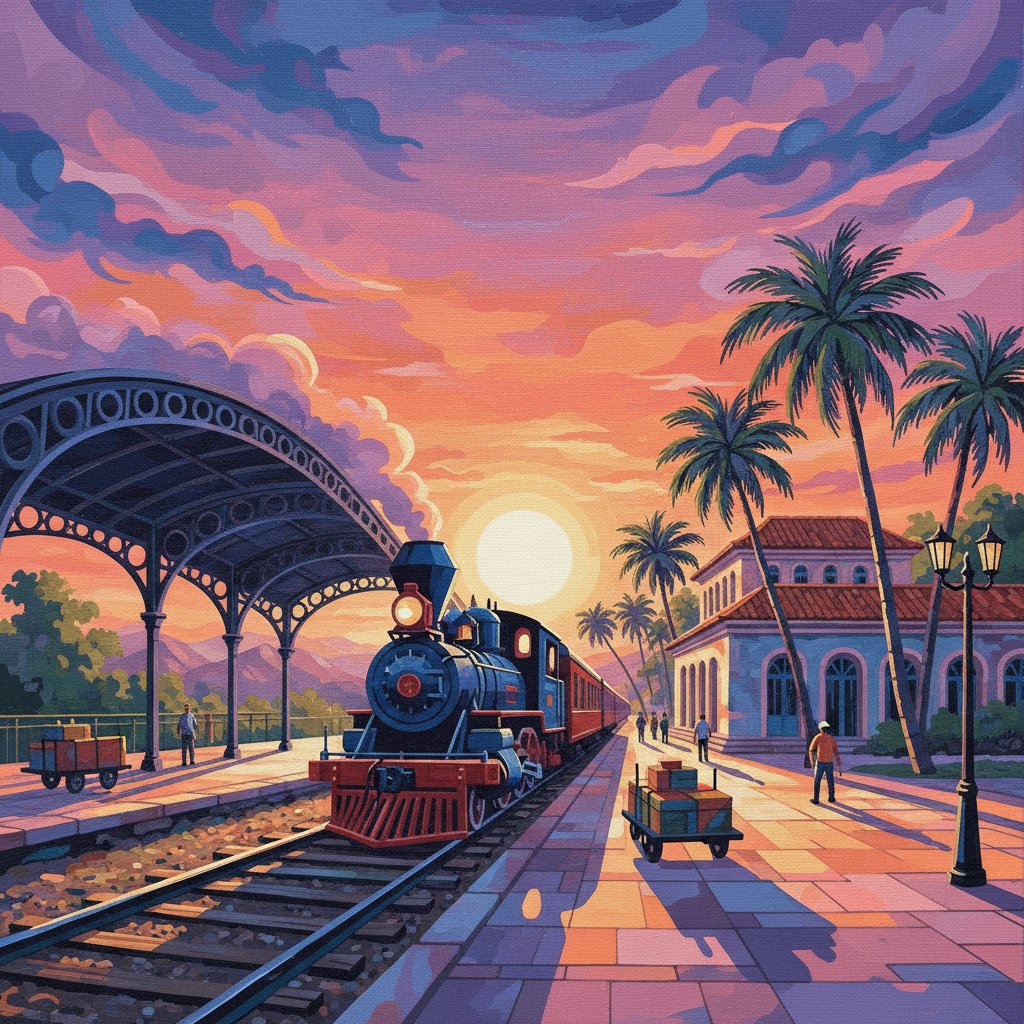 Whether you’re seeking artistic expression or therapeutic relaxation, this vintage railway station painting delivers both beautifully. The finished artwork becomes a conversation piece celebrating railroad heritage and architectural preservation.