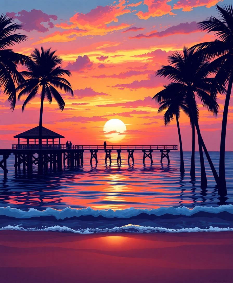 This vintage pier design combines timeless appeal with modern painting accessibility. Furthermore, the coastal themes bring tranquil beach vibes indoors. Each twilight color was carefully selected to recreate authentic vintage charm.