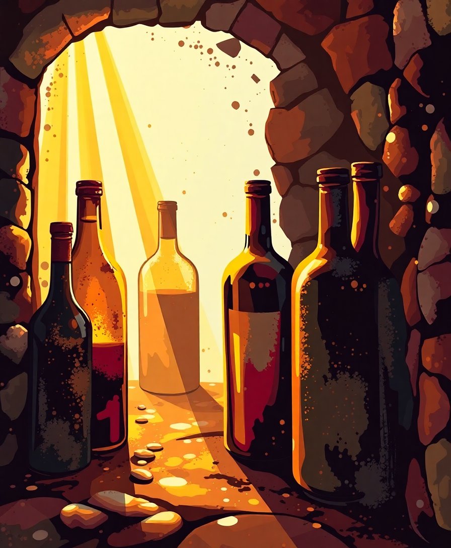Create your own warm, inviting masterpiece that celebrates the timeless beauty of dusty bottles bathed in golden light. This old world wine cellar scene brings sophistication and warmth to any room.