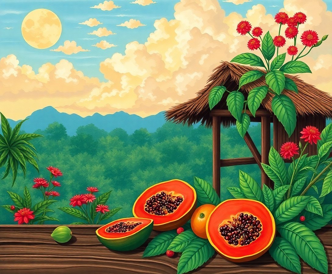 The warm papaya and teak color combination creates a sophisticated, earthy aesthetic. The realistic details and natural tones make it perfect for modern home decor.