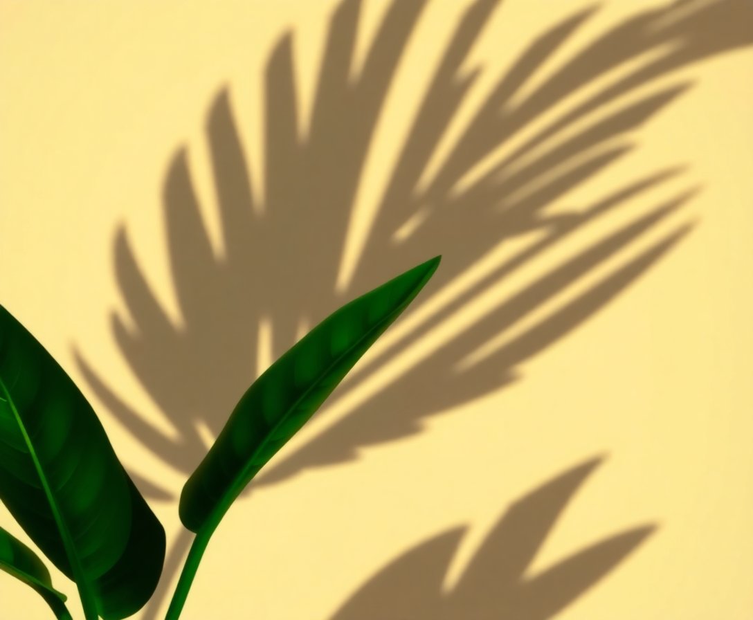 This unique combination of earthy tones and tropical plant silhouettes creates stunning abstract realism. The ochre color palette adds warmth while botanical shadows provide sophisticated artistic depth.