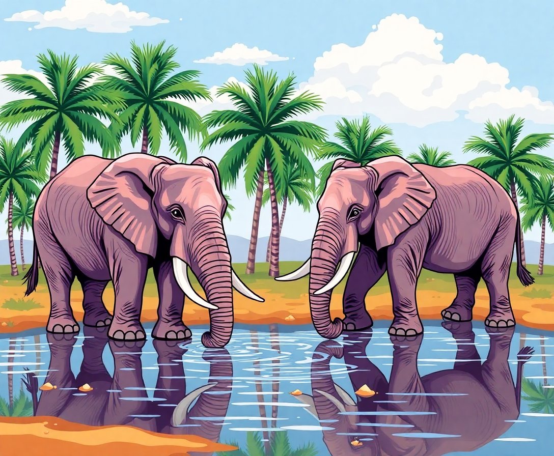 Transform your creative space with this stunning Elephants Drinking Among Palms Paint By Numbers kit. This captivating design captures majestic elephants gathering at a lush oasis surrounded by towering palms. Moreover, the detailed artwork brings the serene beauty of the savannah directly to your home.