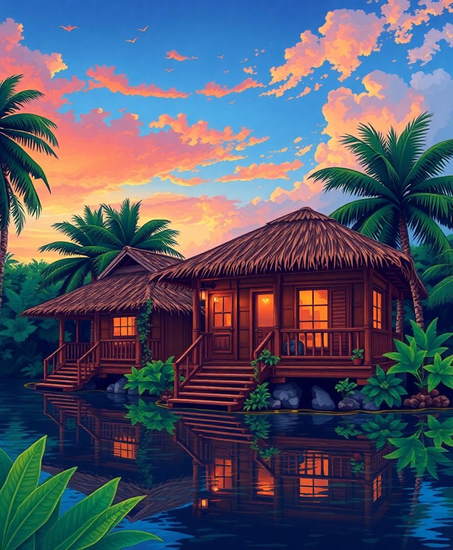 Experience the joy of creating your own tropical cabin retreat. Additionally, this Embers Of The Tropics paint by numbers kit brings rustic charm and warmth to any room. Therefore, start your artistic journey today and illuminate your space with handcrafted beauty.