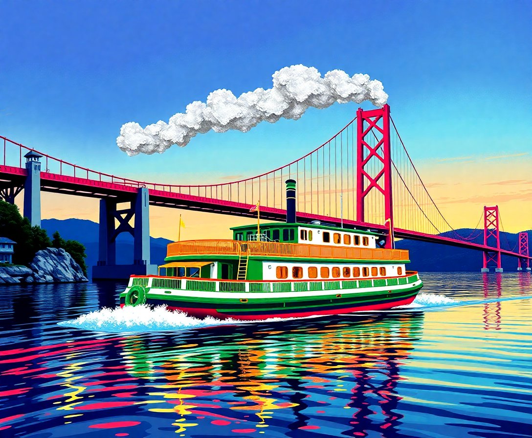 Transform your artistic vision into reality with the stunning Emerald Bay Bridge Steamboat Paint By Numbers. This captivating kit features a majestic steamboat gracefully navigating emerald waters beneath an iconic suspension bridge. Furthermore, every detail captures the perfect harmony between architectural marvel and maritime elegance.