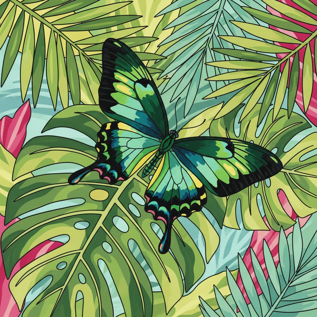 Embrace the tropical paradise waiting on your canvas. This Emerald Birdwing Tropical Leaf Paint By Numbers kit transforms any room into an exotic retreat.
