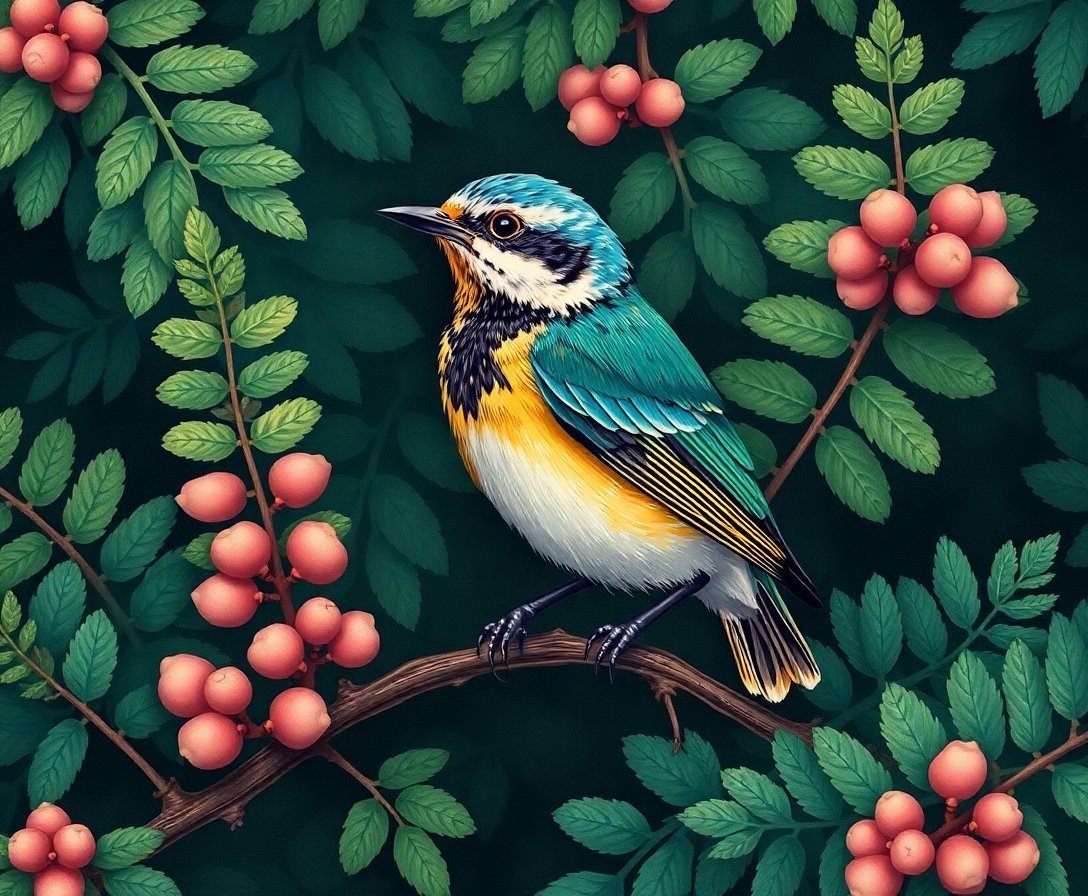 Ultimately, step back and admire your finished creation. Consequently, the emerald ferns and vintage warbler come alive through your artistic vision. Indeed, you’ve created something truly special.