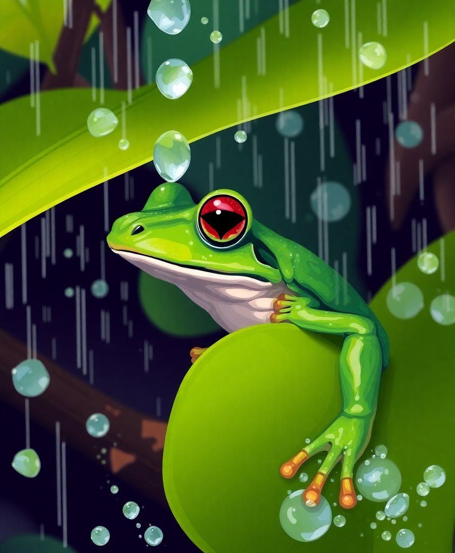 Transform your space with the captivating Monsoon Rainforest Showers beauty of this Emerald Frog Rain Catch Paint By Numbers masterpiece. This stunning tropical artwork captures nature’s most enchanting moment as vibrant emerald tree frogs collect precious raindrops during a gentle monsoon shower.