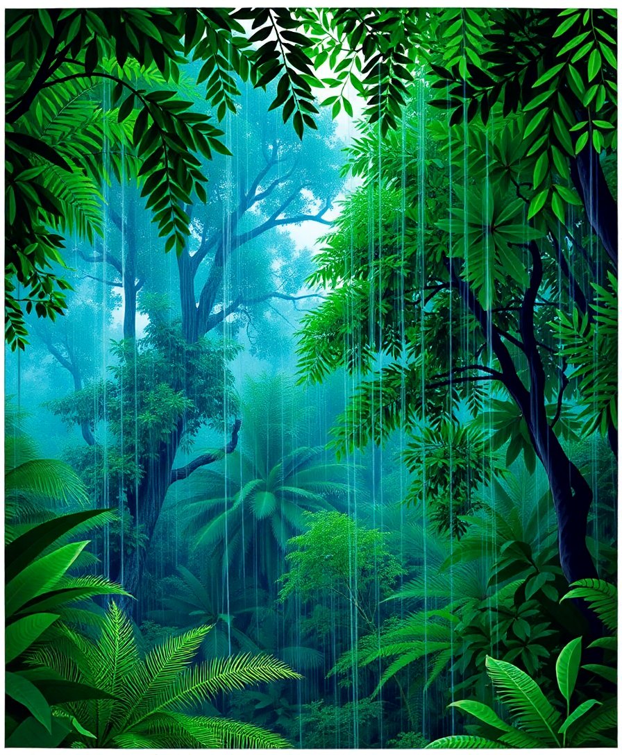 The realistic emerald tones and misty atmosphere capture the authentic beauty of monsoon season canopies. High-quality materials ensure your finished artwork displays vibrant, true-to-life colors.