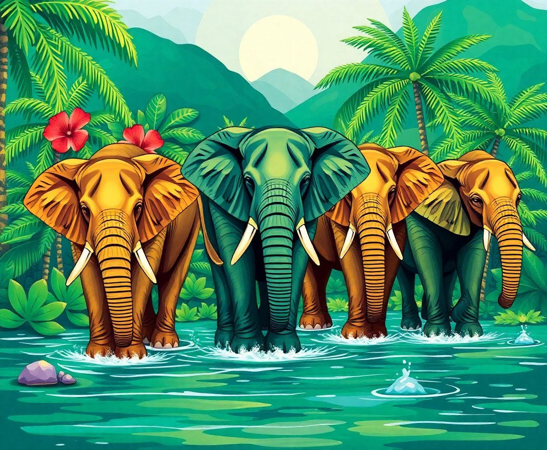 Transform your artistic vision into reality with this stunning landscape masterpiece. The Emerald Oasis Elephant Herd Paint By Numbers captures majestic elephants in their natural tropical habitat. This detailed design brings the serene beauty of an oasis directly to your canvas.