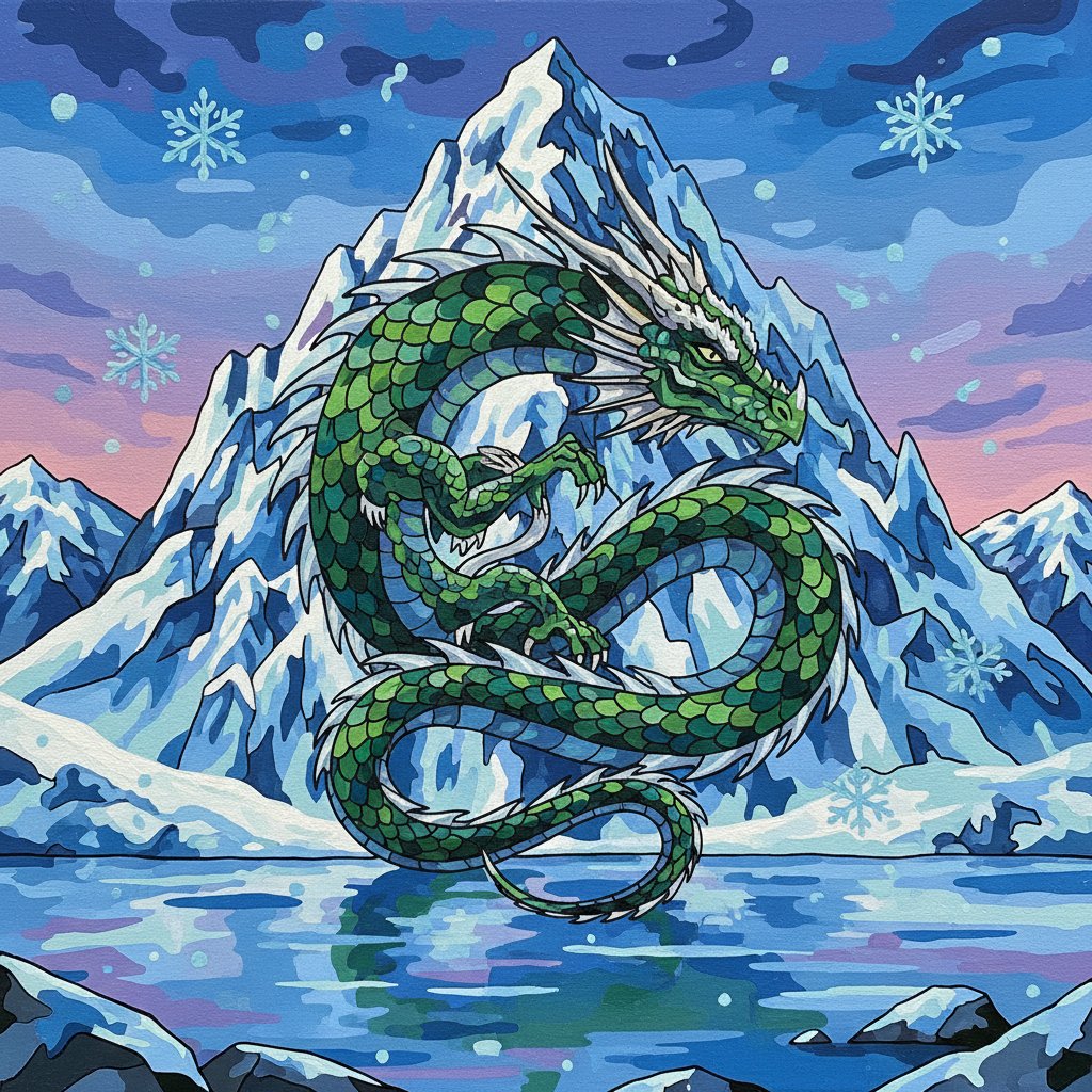 The macro-detailed frost patterns and emerald scales create stunning visual texture that captures winter’s delicate beauty. The realistic approach offers both artistic challenge and therapeutic satisfaction.