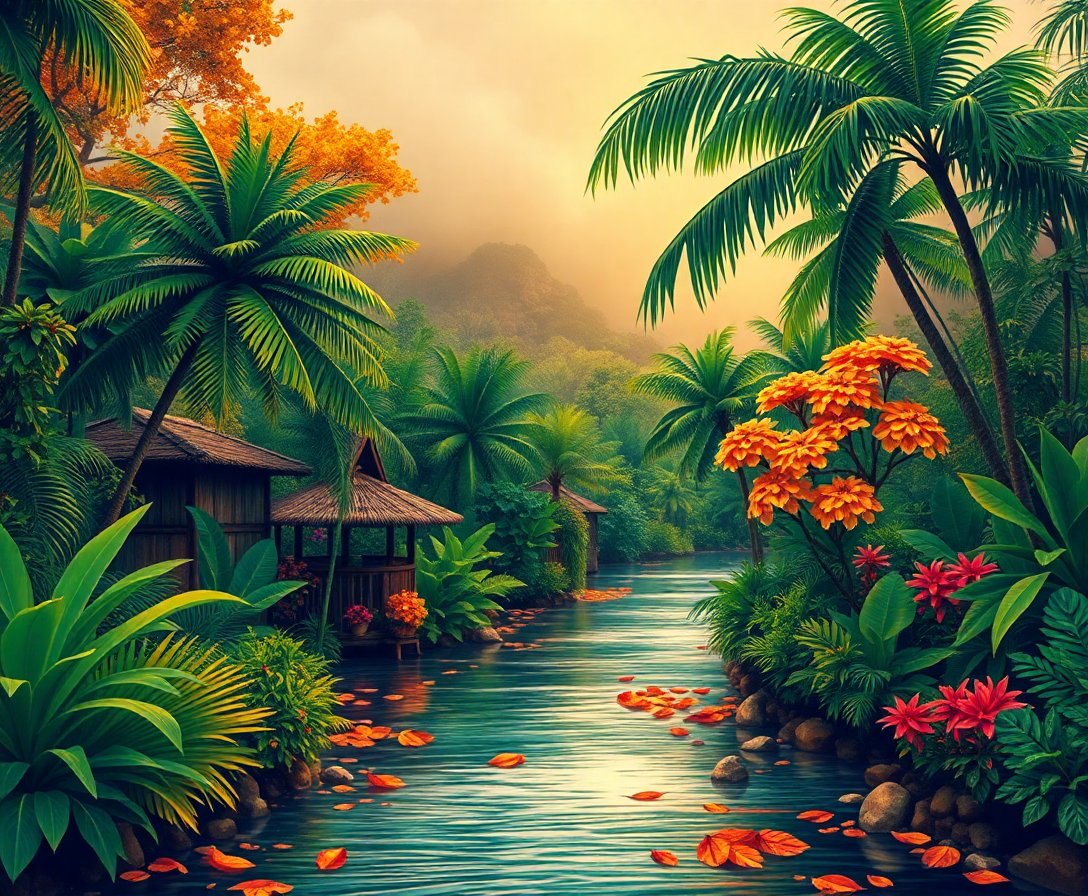 Ultimately, add final details to capture the storm’s intensity and greenery’s depth. Step back and admire your completed tropical paradise. Your finished piece radiates the power and beauty of nature’s dramatic moments.
