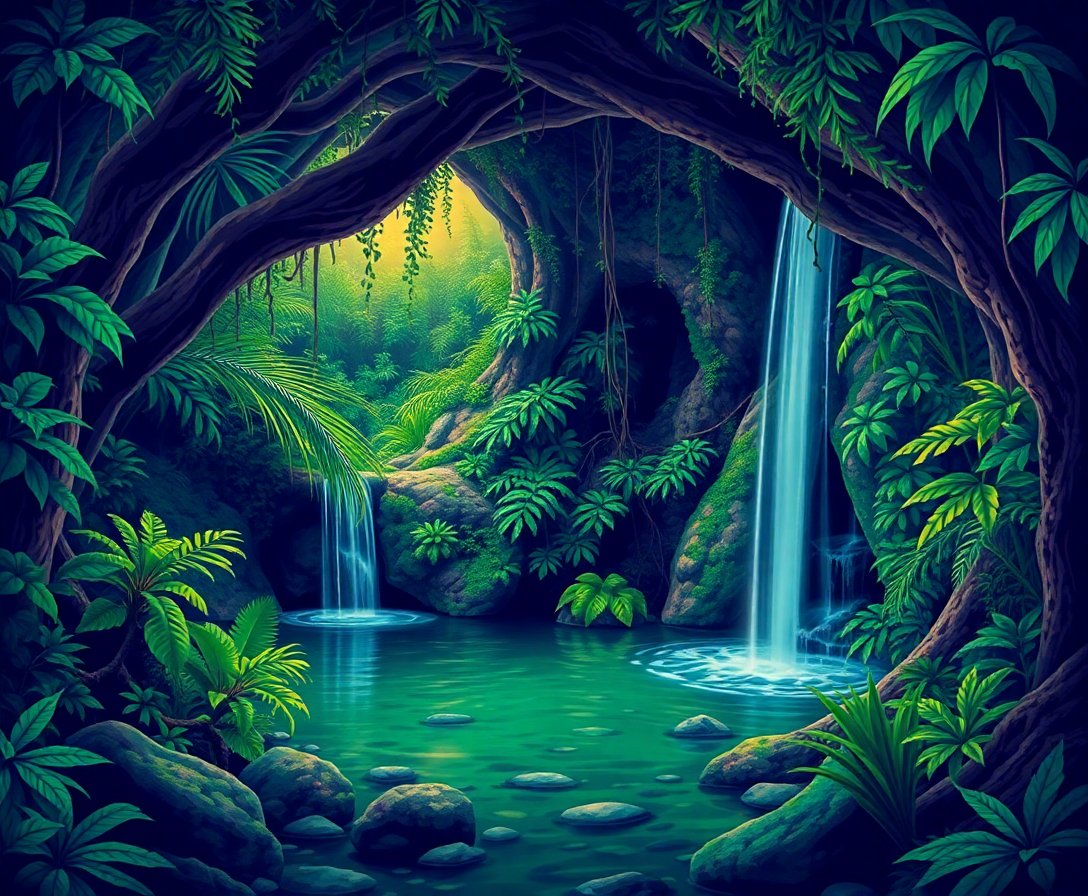 Ultimately, add final details and highlights to complete your tropical grotto scene. Allow each layer to dry completely before proceeding. Moreover, step back periodically to appreciate your emerging masterpiece.