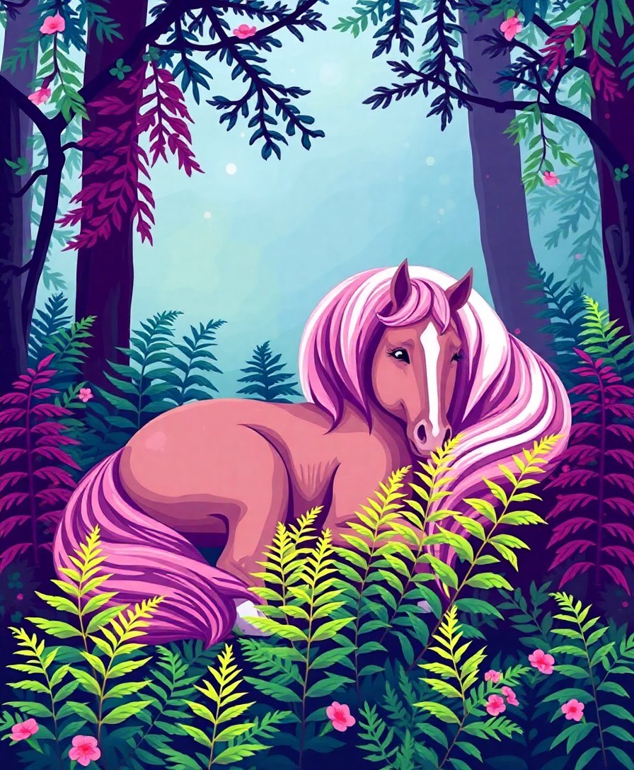 Embark on this enchanting artistic journey today. Your Equine Slumber Among Ferns Paint By Numbers kit awaits, ready to transform blank canvas into mystical beauty.