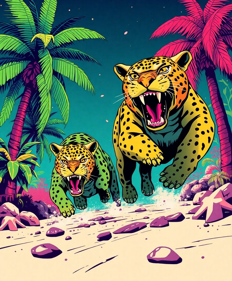 Transform your creative space with the captivating Evading Tropical Brass Panthers Paint By Numbers design. This stunning kit brings together metallic elegance and jungle mystique. Moreover, it offers an extraordinary artistic journey that combines Mid-Century Sci-Fi aesthetics with tropical wilderness themes.