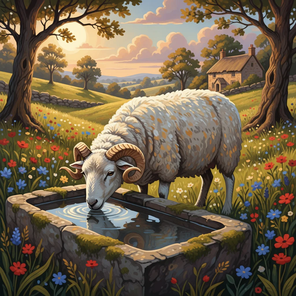 Transform your creative space with this charming rural scene featuring gentle sheep gathered around a weathered stone trough. This Ewe At Antique Trough paint by numbers kit captures the peaceful essence of countryside living through carefully detailed brushwork and warm, earthy tones.