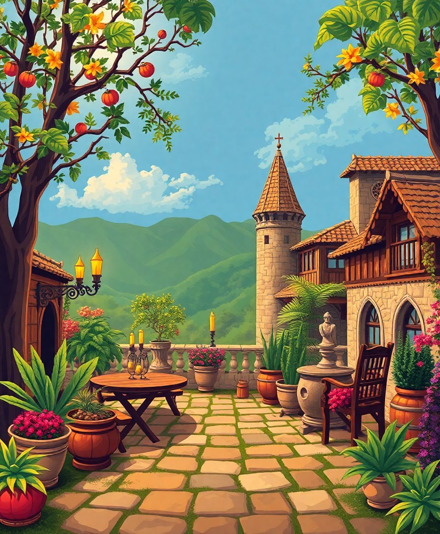 Ultimately, add final details to bring Lancelot’s retreat to vibrant life. Step back and admire your nostalgic creation that perfectly captures both mythical legend and tropical tranquility. Your completed artwork becomes a stunning conversation piece.