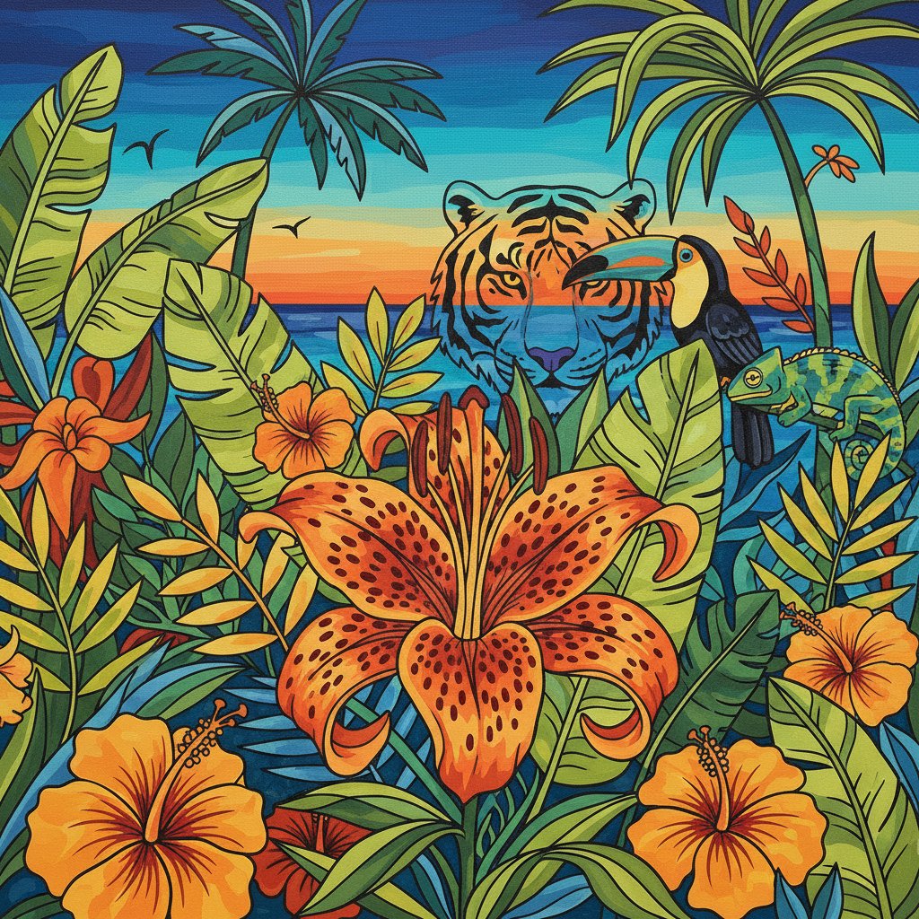 The high-quality linen canvas provides ample detail space for capturing the lily’s intricate center and vivid tropical colors perfectly.