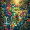 Initially, prepare your creative workspace in a well-lit area with good ventilation. Additionally, arrange your paints and brushes within easy reach. Subsequently, examine the numbered canvas to familiarize yourself with the vintage tropical scene.