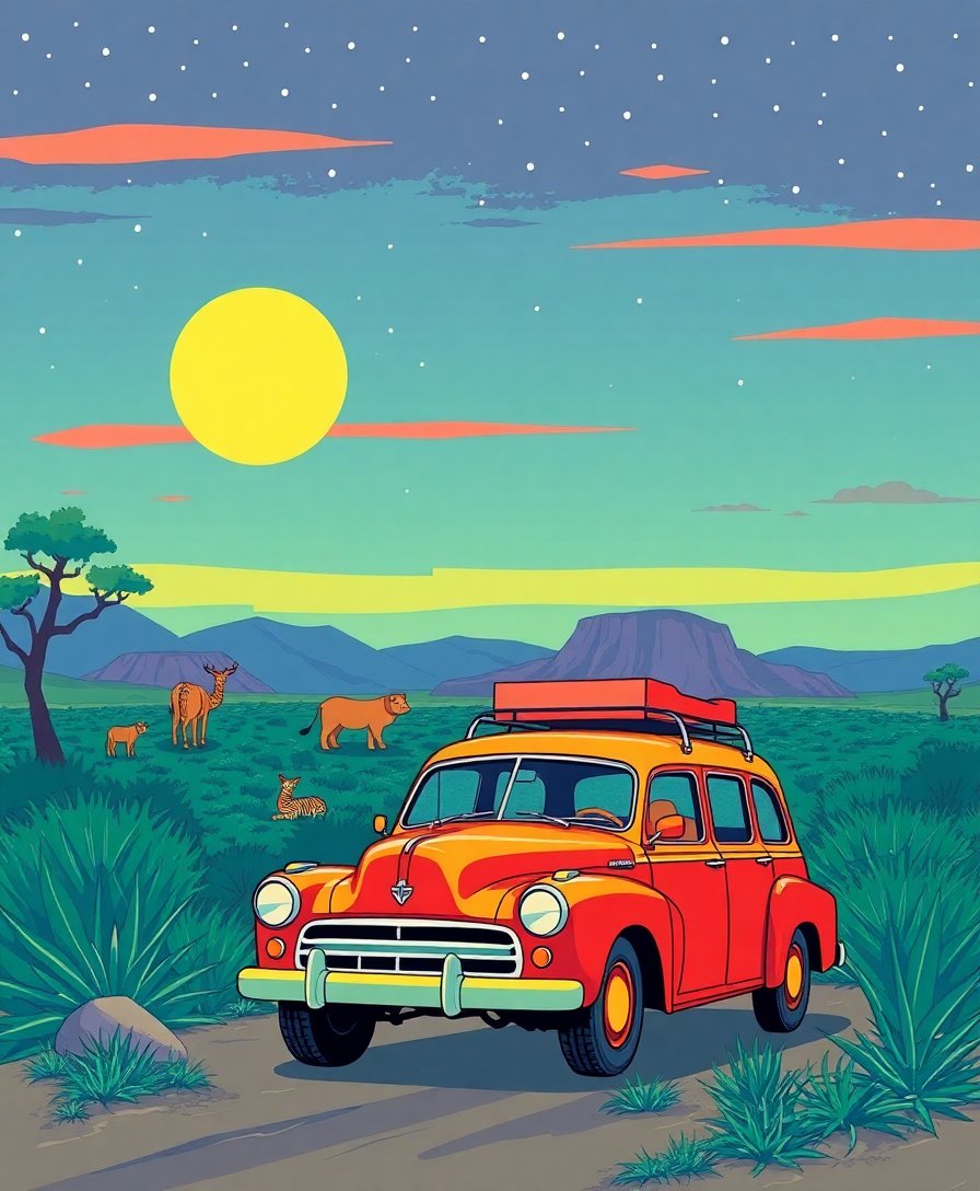 Ultimately, step back and admire your completed vintage safari masterpiece. Furthermore, the sepia tones and cinematic composition transport viewers to adventure-filled eras. Consequently, you’ve created a stunning conversation piece.