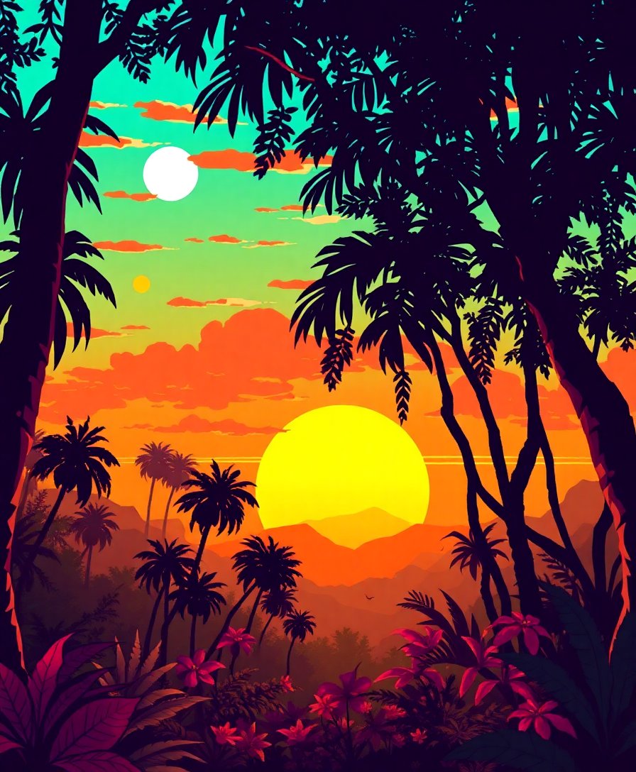 Transform your space with this nostalgic Faded Arcade Jungle Sunset Paint By Numbers kit. This stunning design captures the essence of retro gaming aesthetics. Moreover, it blends tropical warmth with classic arcade vibes seamlessly.