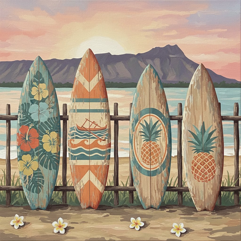 Transform your space with the serene beauty of weathered surf culture through this Faded Boards Of Oahu Paint By Numbers kit. This captivating artwork captures the essence of vintage Hawaiian surfboards against Oahu’s stunning coastline. Additionally, each brushstroke brings you closer to creating your own tropical masterpiece.