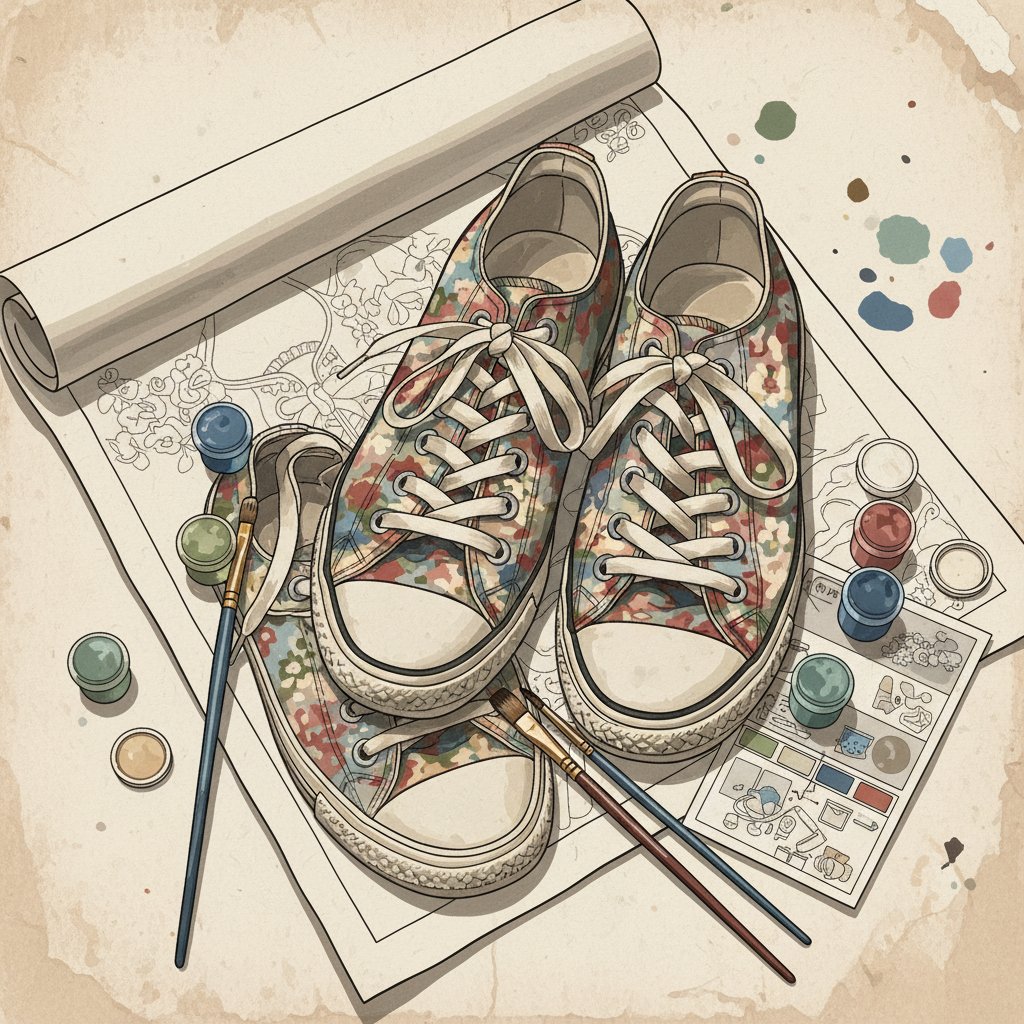 Subsequently, begin matching numbered paint colors to corresponding canvas sections. Work systematically from one area to another, allowing each section to dry completely. Focus on the intricate floral patterns first, then move to the sneaker details. This methodical approach ensures precision and prevents color bleeding.