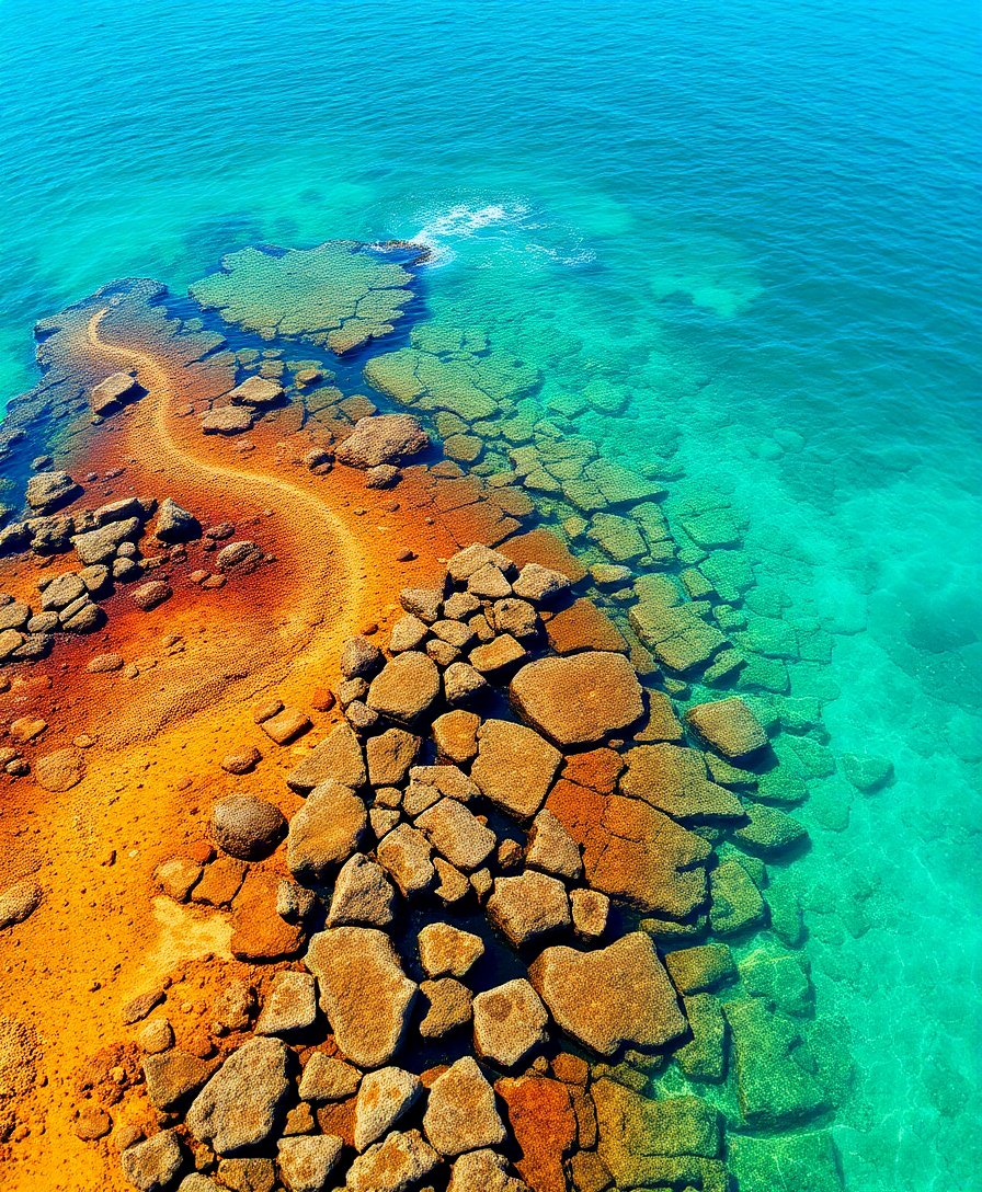 The muted colors and nostalgic coral atoll theme create a timeless coastal atmosphere. This design captures the weathered beauty of tide pools and reef edges perfectly.
