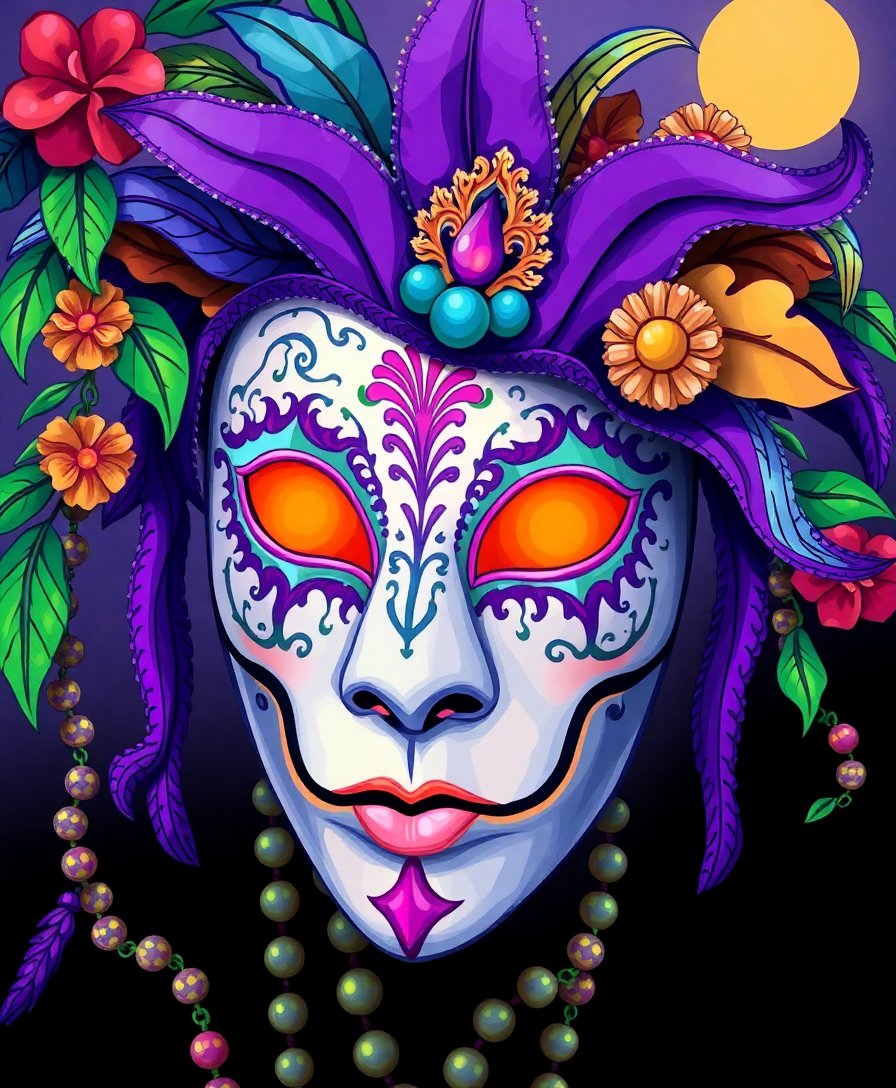 Ultimately, witness your tropical celebration emerge in stunning detail. Moreover, the finished piece radiates warmth and joy. Display your Mardi Gras Masquerade creation proudly.