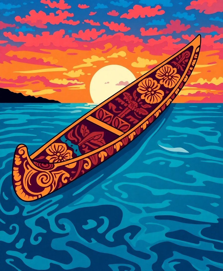 Faded Polynesian Canoe Paint By Numbers