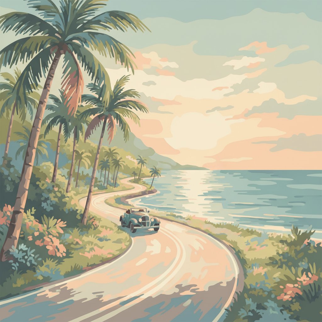 Transform your space with the captivating beauty of coastal landscapes through this stunning Faded Tropical Ocean Drive Paint By Numbers masterpiece. This enchanting kit captures the essence of sun-bleached tropical shores where ocean breezes whisper tales of endless summer days.