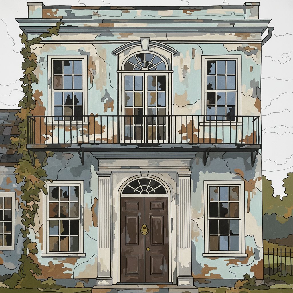 Ultimately, complete the finest details with your small brush to bring the historical facade to life. Consequently, your finished piece will showcase the elegant decay and timeless appeal of vintage colonial buildings.
