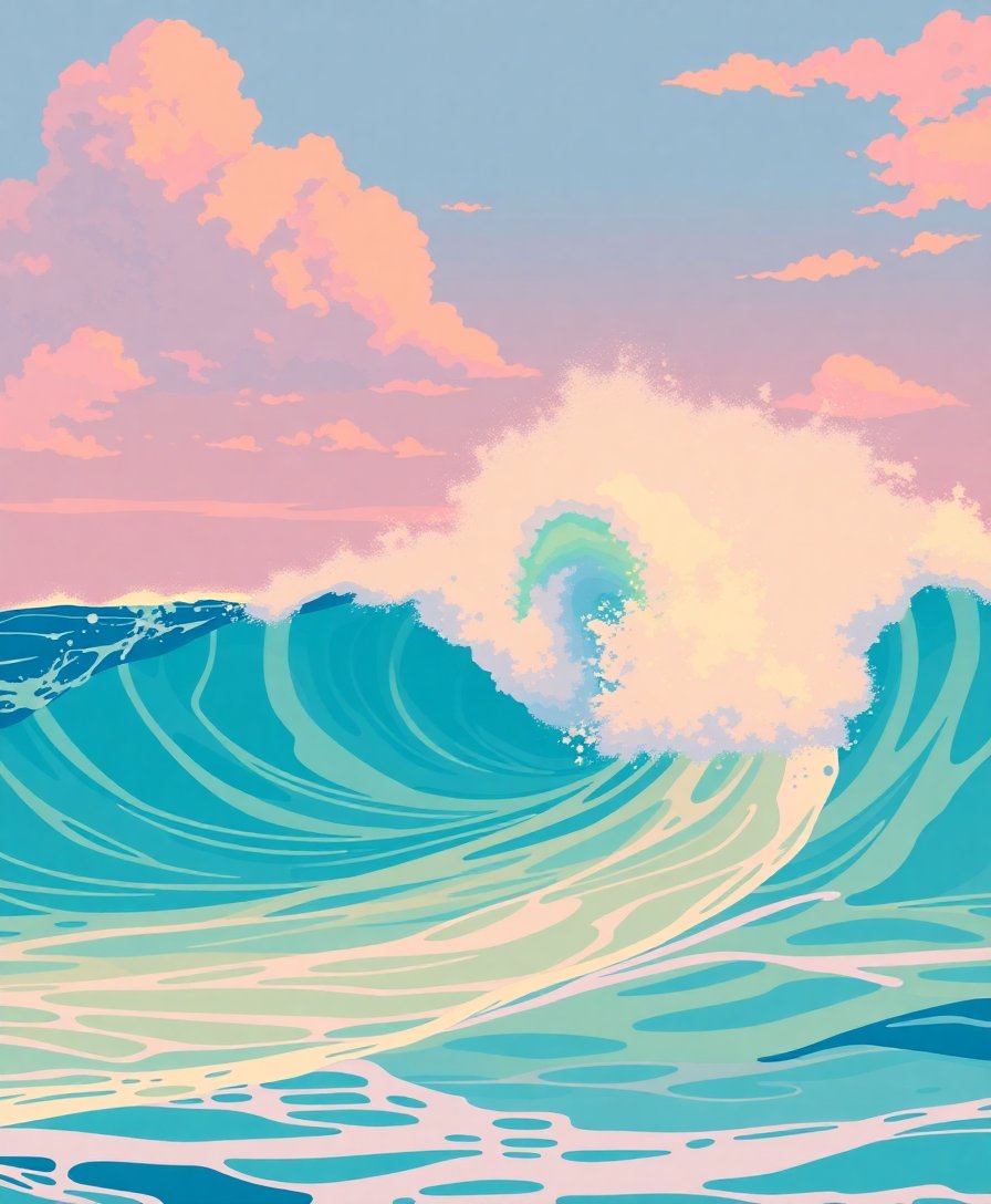 This vintage-inspired seascape combines realistic detail with accessible painting techniques. Additionally, the evening lighting creates dramatic visual impact. The retro surf culture theme appeals to ocean lovers everywhere. Finally, retro surf culture enthusiasts will appreciate the authentic aesthetic.