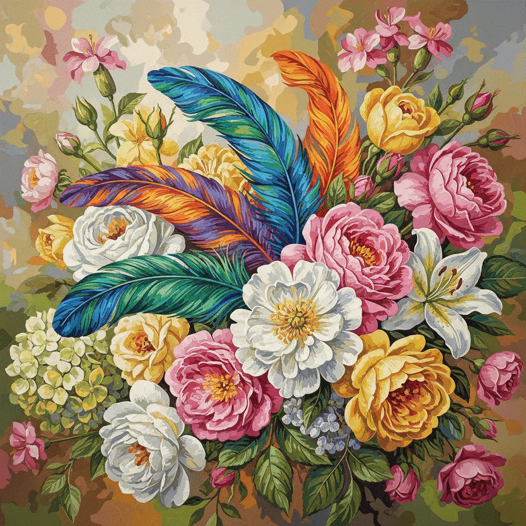 Begin your artistic journey today with this captivating paint by numbers experience. The combination of feathers and realistic blooms creates an unforgettable creative adventure. Order now and discover the joy of botanical artistry.