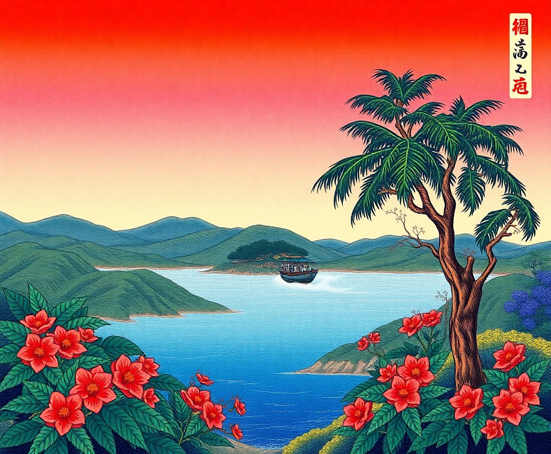 This design captures the essence of feudal Japan’s artistic traditions beautifully. The Feudal Japanese Woodblocks influence shines through every detail. Premium materials ensure vibrant colors that last for years. The tropical elements add modern appeal to classical themes.