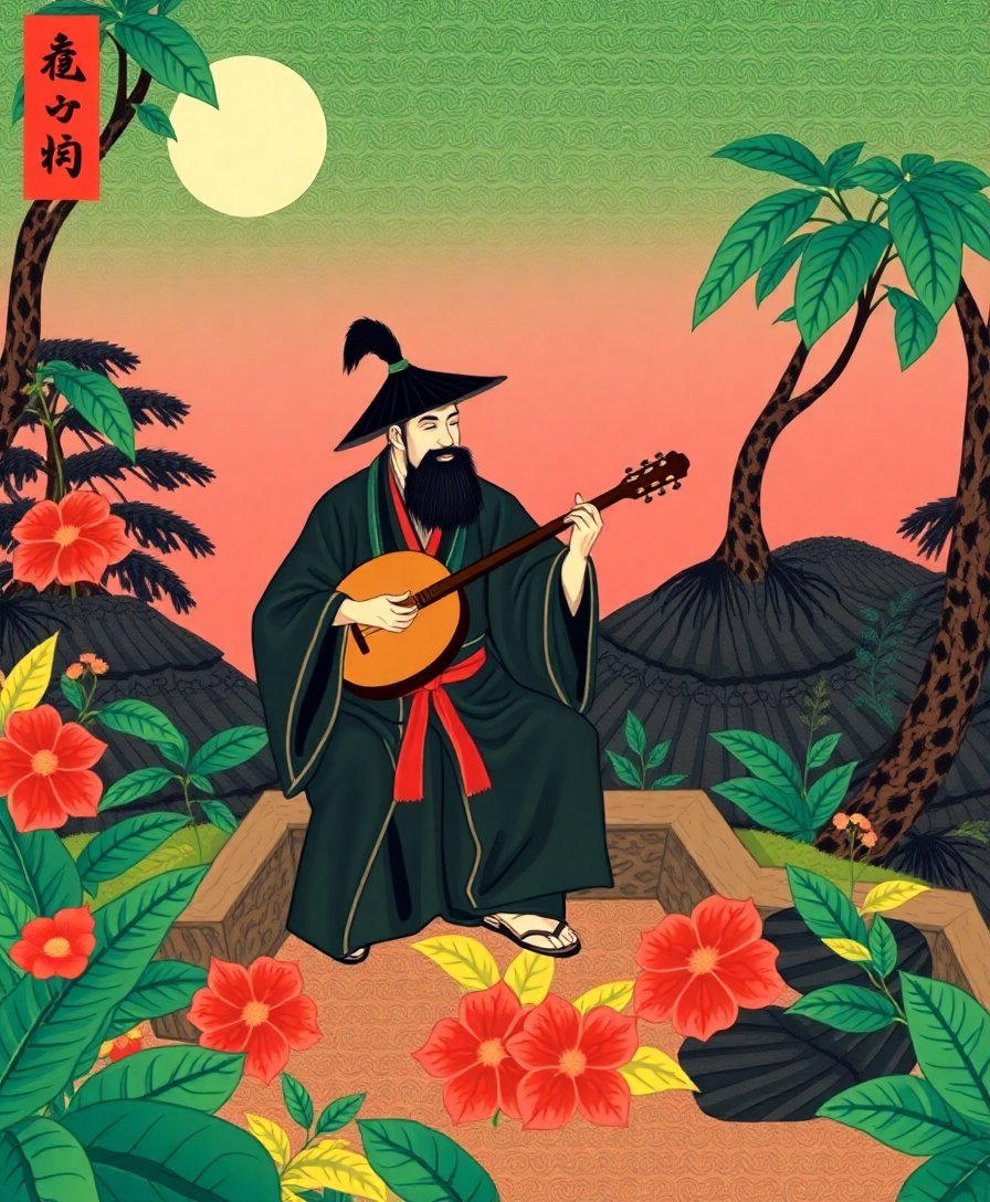 Transform your creative space with the captivating Feudal Musician Tropical Shade Paint By Numbers. This exquisite kit brings together the rich heritage of Japanese artistry and the relaxing joy of modern painting. Each brushstroke reveals intricate details of a traditional musician surrounded by lush tropical elements.
