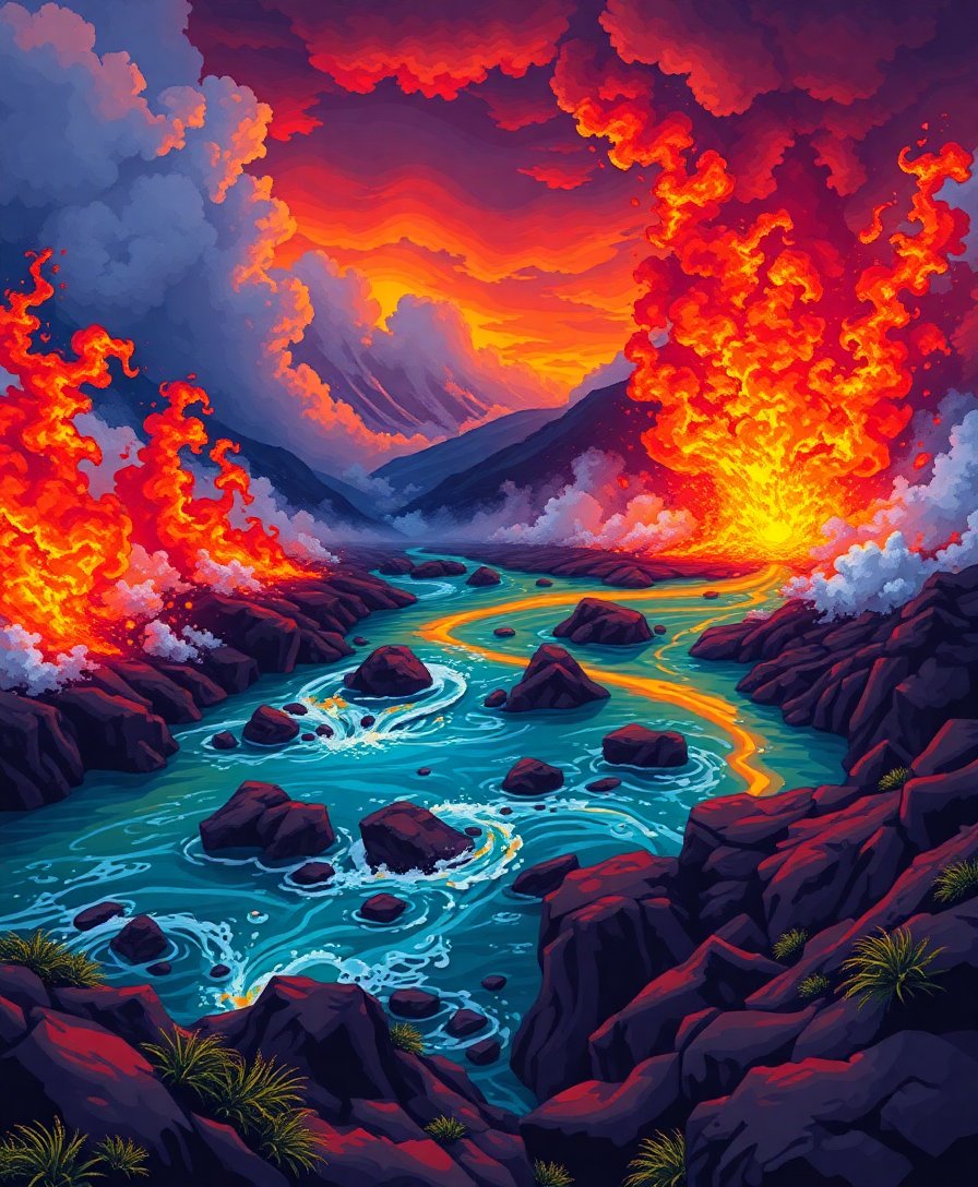Your complete artistic journey includes everything needed to recreate this breathtaking volcanic masterpiece: