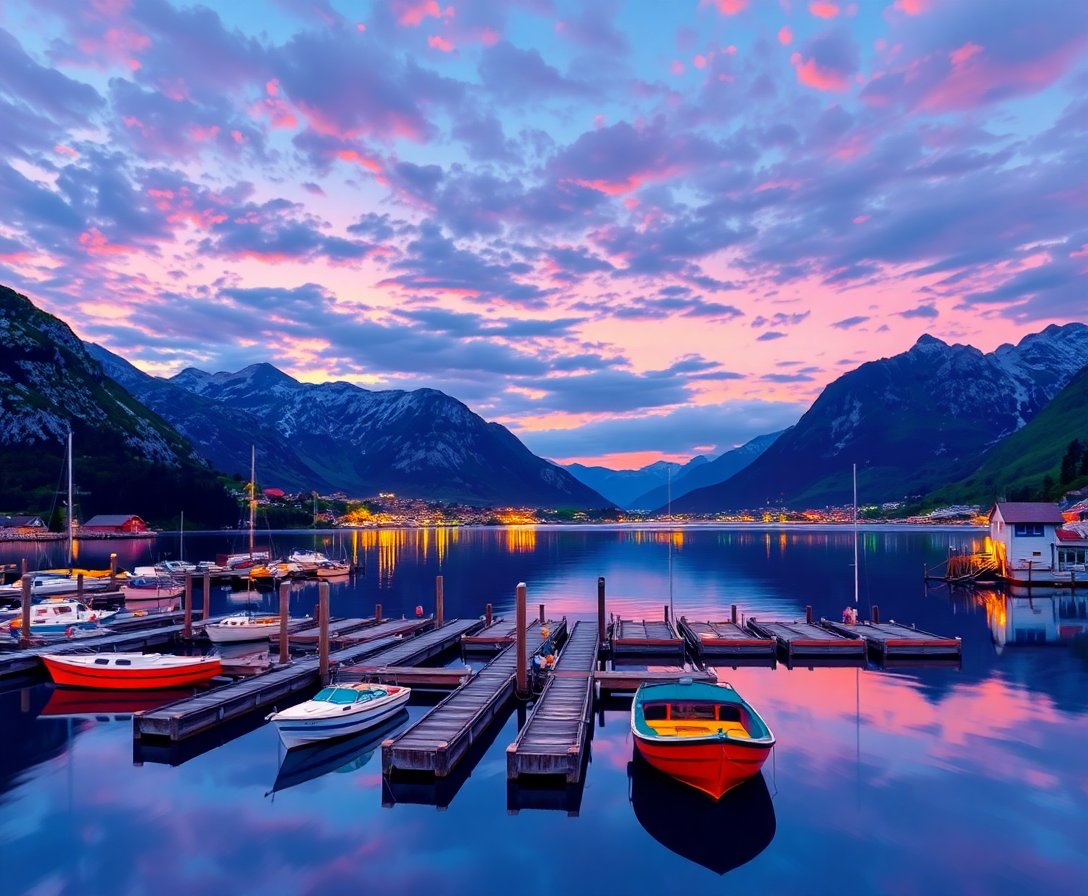 Ultimately, step back and admire your finished Nordic masterpiece. The docks appear to float on mirror-like waters. Evening light dances across mountain peaks. Your completed artwork captures the essence of Nordic twilight perfectly.