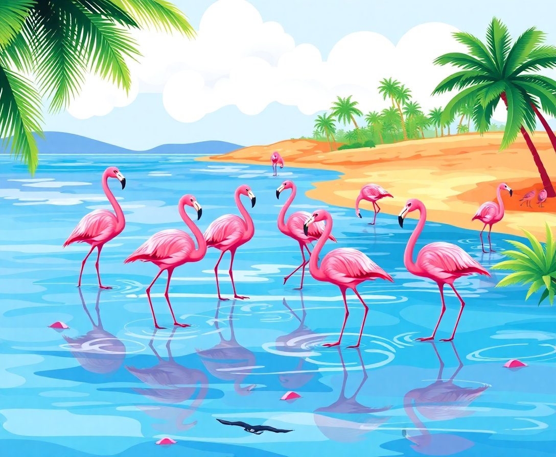 Transform your creative space with the stunning Flamingos Wading Tropical Shores Paint By Numbers masterpiece. This captivating design brings the serene beauty of coastal paradise directly to your home. Meanwhile, each brushstroke reveals elegant pink flamingos gracefully wading through crystal-clear waters.