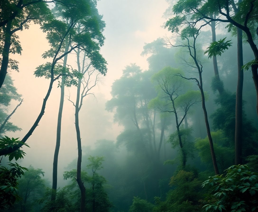 Ultimately, add the final canopy details to complete your rainforest scene. Watch as the muted morning light emerges through your careful work. Your finished masterpiece captures nature’s serene beauty perfectly.