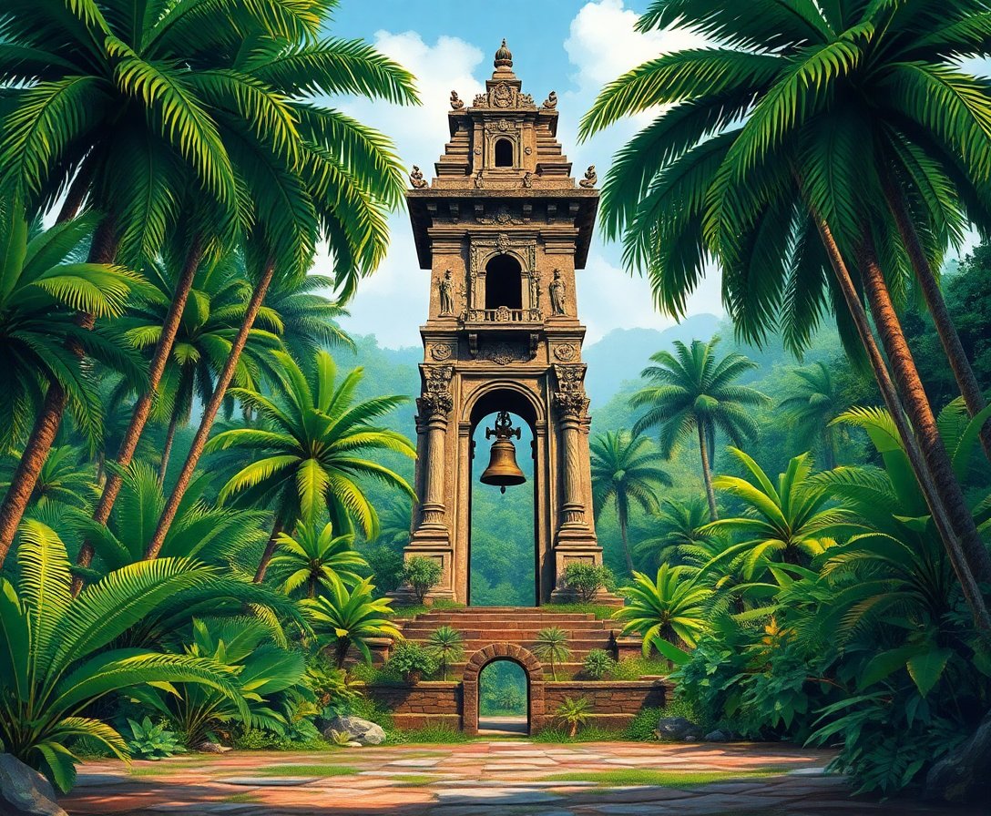 Ultimately, add the finest details that bring your tropical bell tower to life. Focus on the intricate interplay between ancient stones and lush vegetation. These final touches transform your canvas into a stunning representation of nature’s architectural restoration process.