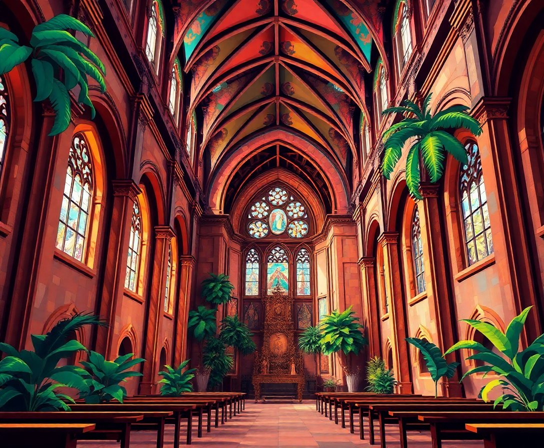 Transform your space with the enchanting Forgotten Tropical Church Nave Paint By Numbers, where sacred architecture meets lush jungle beauty. This captivating design captures sunlight filtering through ancient stone arches as nature reclaims a vintage cathedral nave.