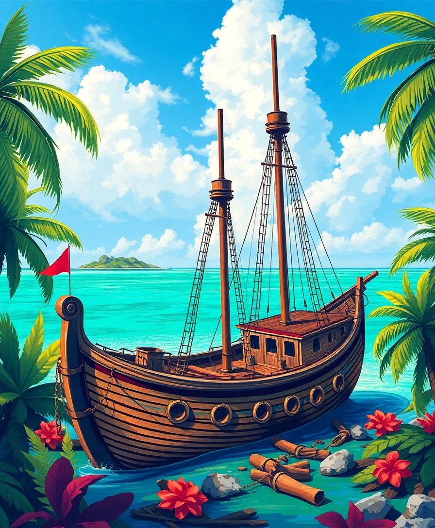 Forgotten Tropical Galleon Paint By Numbers